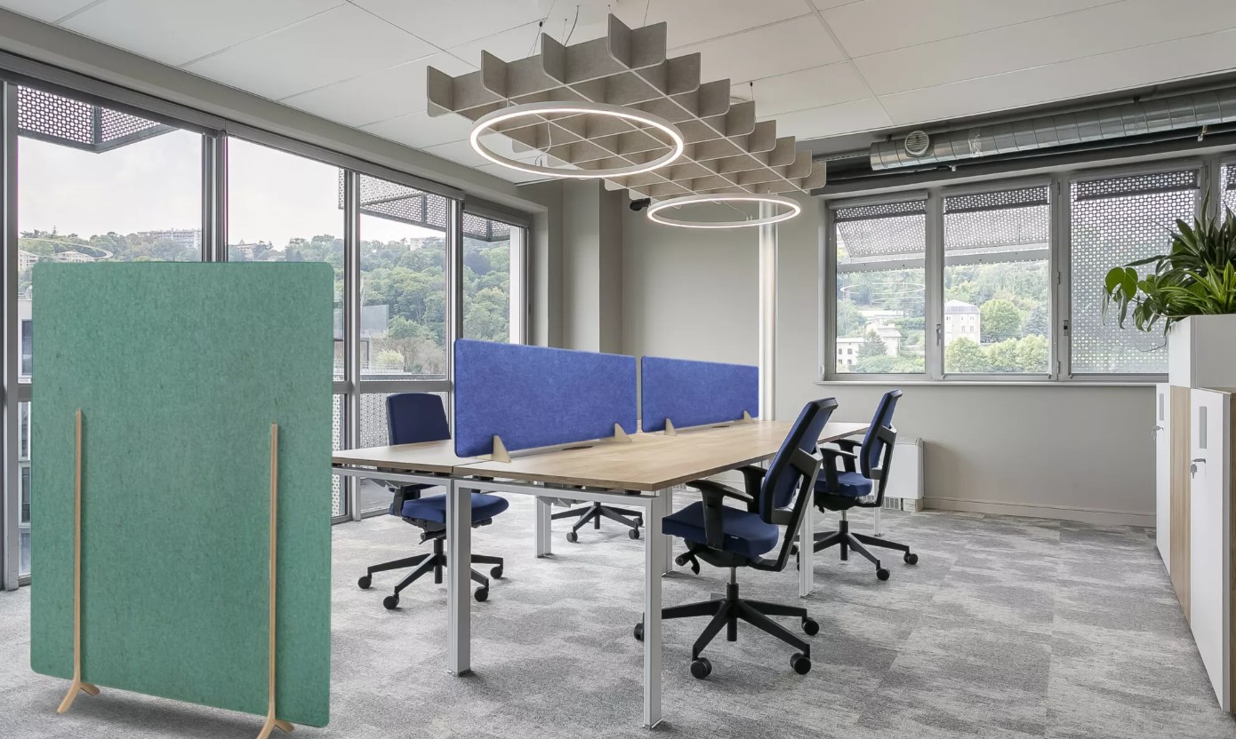 La solution acoustique Oslo est une cloison et un écran séparatif en rPET conçus pour structurer les espaces tout en améliorant le confort sonore. Modulable et disponible en version autoportante ou écran de bureau, elle permet de créer des zones de confidentialité sans travaux lourds ni aménagements fixes.