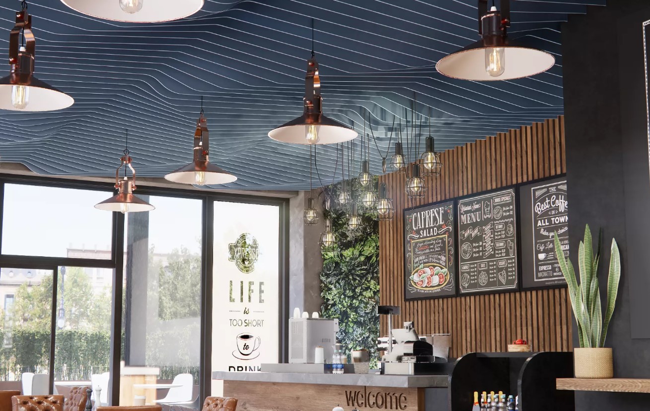 Grâce à sa conception modulaire (différentes hauteurs de baffles, entraxes ajustables et nombreuses finitions), San Diego s’adapte à toutes les configurations architecturales et techniques : luminaires, ventilation, sprinklers ou réseaux intégrés.