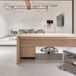 Avec son plateau épais et sa structure solide, il apporte une présence forte dans l’espace tout en garantissant un usage confortable au quotidien. Modulable avec extensions et options d’équipement, il s’adapte parfaitement aux besoins des environnements de direction.