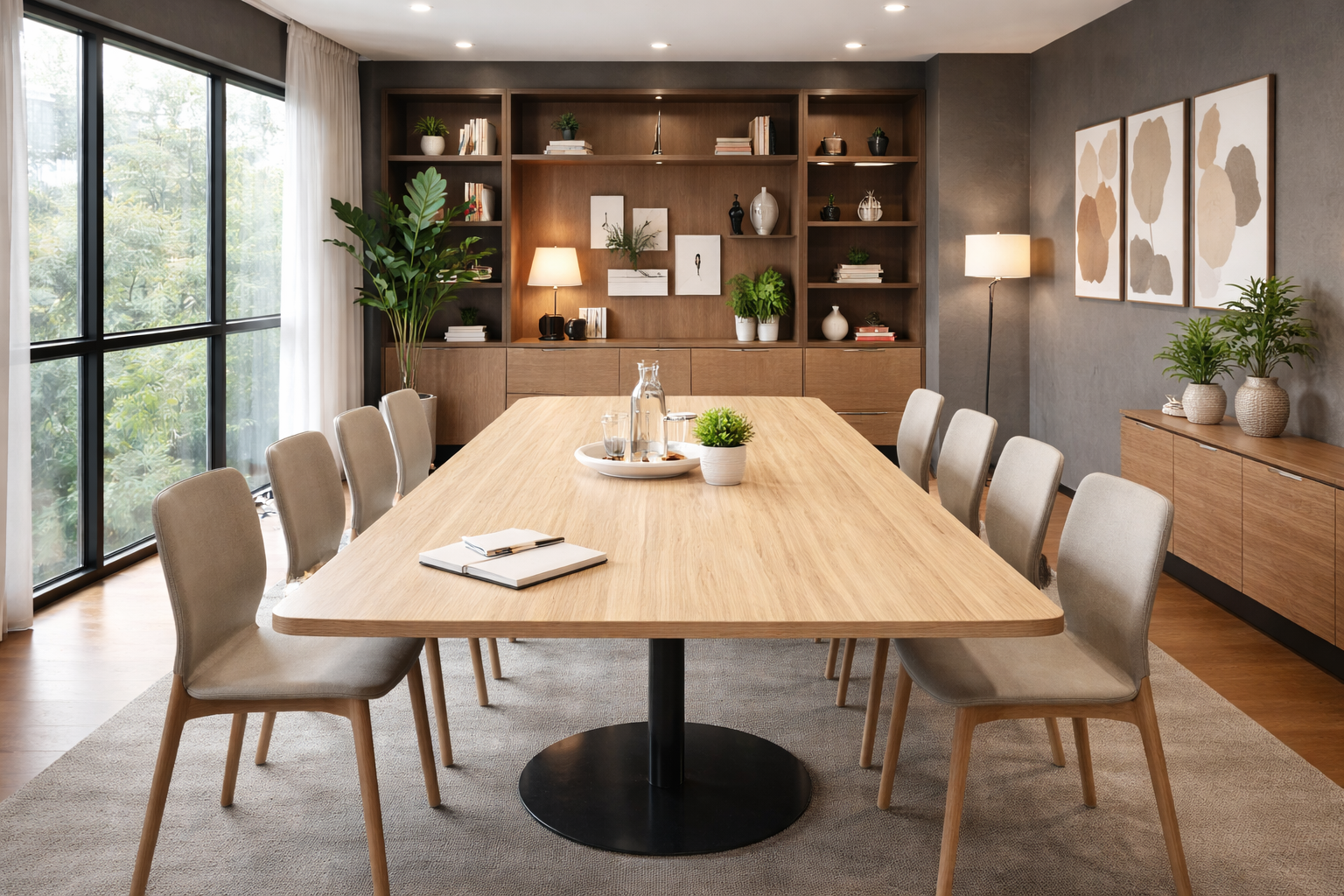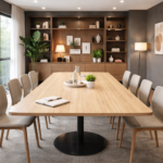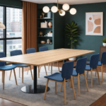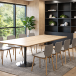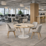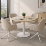 Dotée d’un plateau mélaminé épais et résistant avec finition antireflet, elle garantit durabilité et confort d’utilisation. Son piètement tulipe métallique assure une excellente stabilité tout en libérant de l’espace pour les utilisateurs. Disponible en formats rectangulaire, ovale ou rond, elle s’adapte à toutes les configurations de salles de réunion.