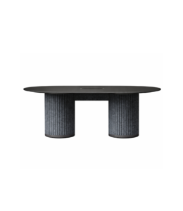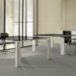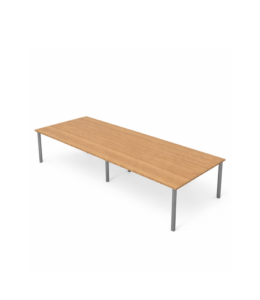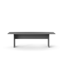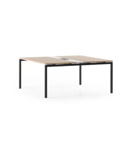 Sa structure repose sur un piètement à section rectangulaire aux proportions marquées, véritable signature esthétique qui apporte caractère et stabilité à l’ensemble. Les plateaux fins et larges offrent un espace de travail confortable, idéal pour collaborer, recevoir ou organiser des réunions.
