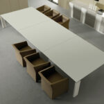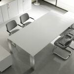 Pensée pour les environnements professionnels modernes, elle intègre des solutions fonctionnelles comme la gestion des câbles via piètement central ou passe-câbles intégrés, ainsi que des options modulaires permettant d’adapter la table à différentes configurations et usages.