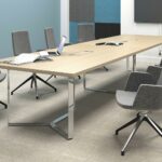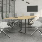 Dotée d’un plateau épais en mélaminé ou placage bois et d’un système de gestion des câbles intégré, elle facilite l’organisation des équipements. Son piètement en acier au design épuré apporte stabilité et modernité, tandis que ses différentes configurations (rectangulaire ou ronde) s’adaptent à tous les usages collaboratifs.